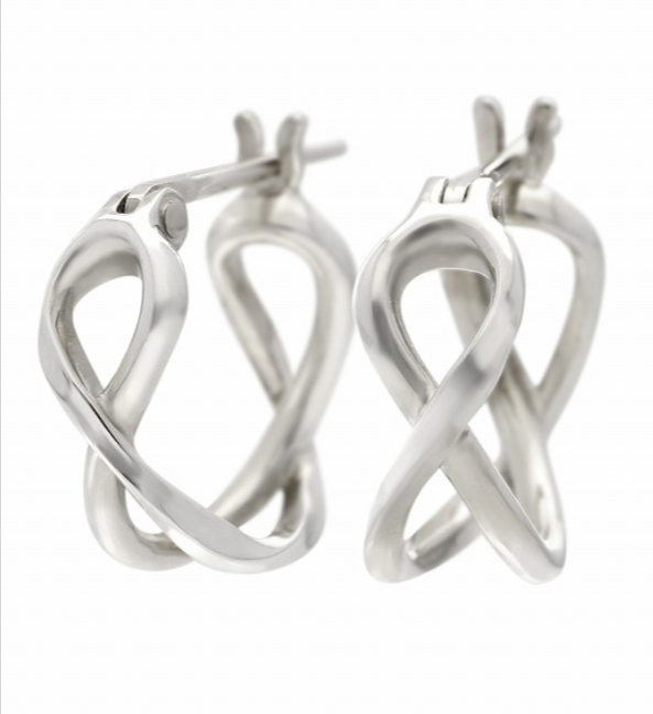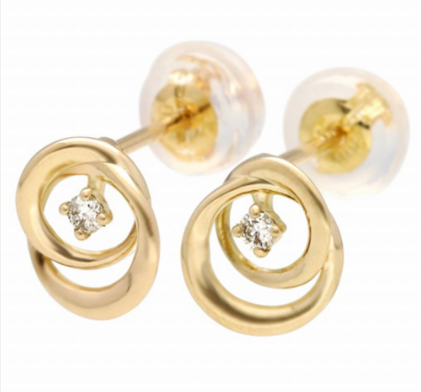 立体的に重なるサークルの中で一粒のダイヤモンドが輝くスタッドピアス。