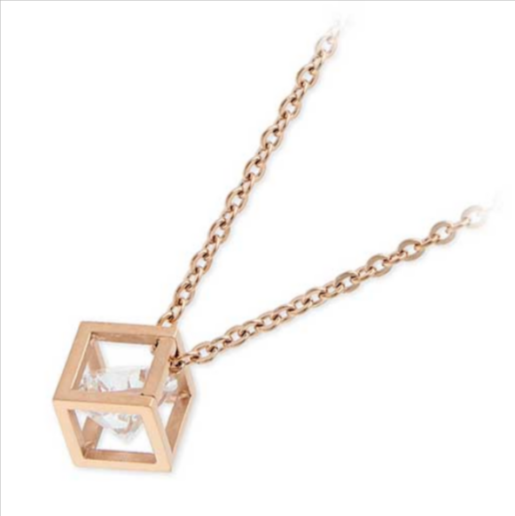 大粒なキュービックジルコニアをキューブの枠の中に閉じ込めたネックレス。