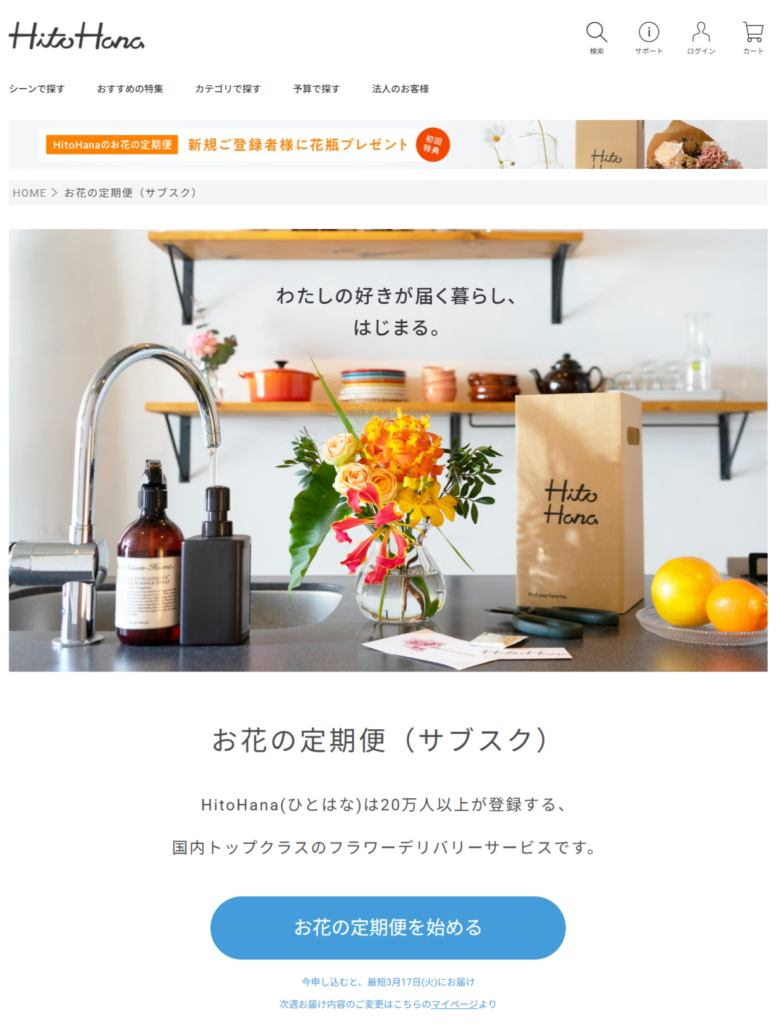 初回利用時に花瓶が付く点も特徴の一つです。